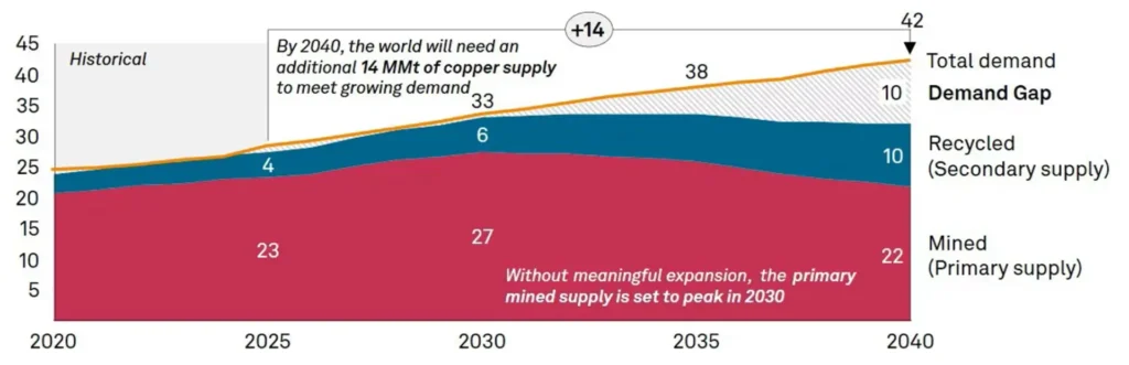Billionaire mining magnate Robert Friedland predicts a massive, long-term supply “train wreck”. He argued in 2024 that “copper prices must rise significantly—potentially to $15,000/tonne”.[3]