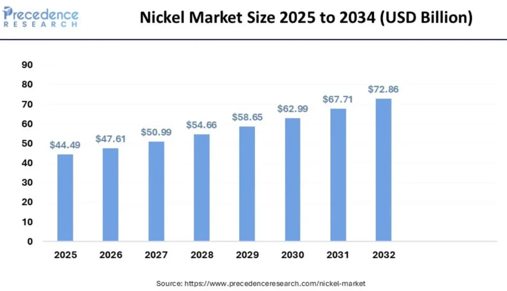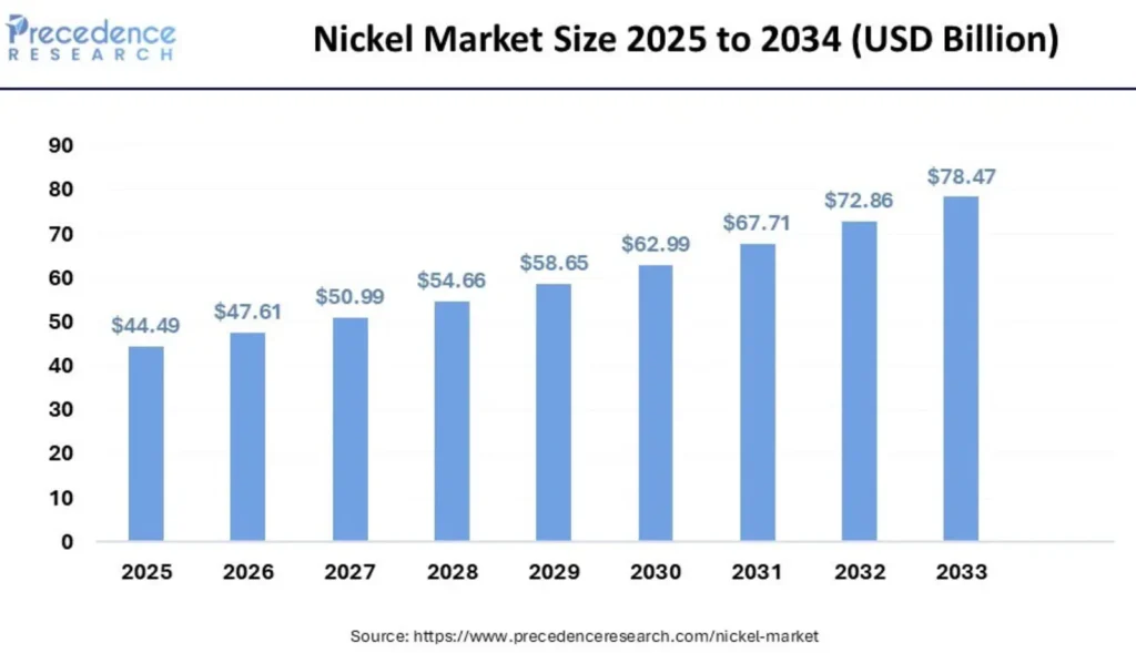 Nickel is officially designated as a critical mineral by the USGS and other nations due to its essential role in stainless steel, EV batteries, and renewable energy infrastructure. Global demand is projected to double by 2040, driven by its necessity in high-energy density batteries, making it a cornerstone for the green energy transition.[2]